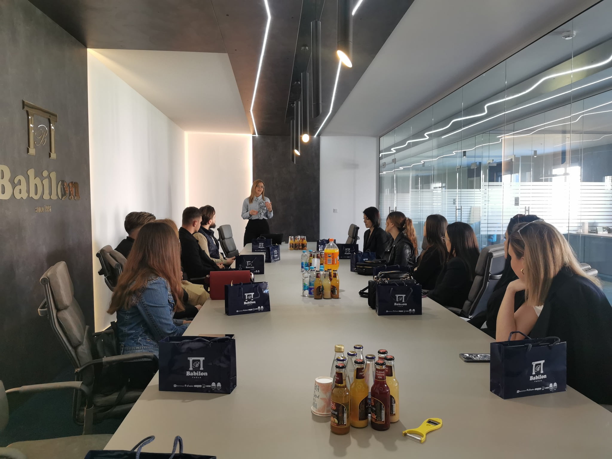 Predstavnici “Babilona” predstavili su studentima razvojini put ove respektabilne bosanskohercegovačke kompanije, od osnivanja 1996. godine, kao male porodične firme, pa sve do danas kada kompanija broji oko 200 zaposlenika i sastoji od 5 sektora (B repromaterijali: uvoz i distribucija repromaterijala, raskrajanja i kantiranja iverice na željene dimenzije kupca; B design: dizajniranje, projektovanje i proizvodnja pločastog namještaja po mjeri kupca; B centar: maloprodajni salon namještaja; Imagine sofa: proizvodnja i prodaja tapaciranog namještaja i Velmob: veleprodaja namještaja).