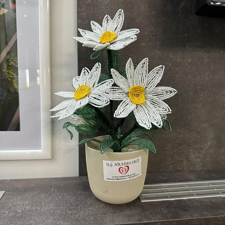 Od njih smo dobili na poklon prekrasan cvijet koji je ručno rađen i zaista hvale vrijedan.To su pravi mali umjetnici, a u udruženju možete kupiti cvijeće i ukrase izrađene od perlica.